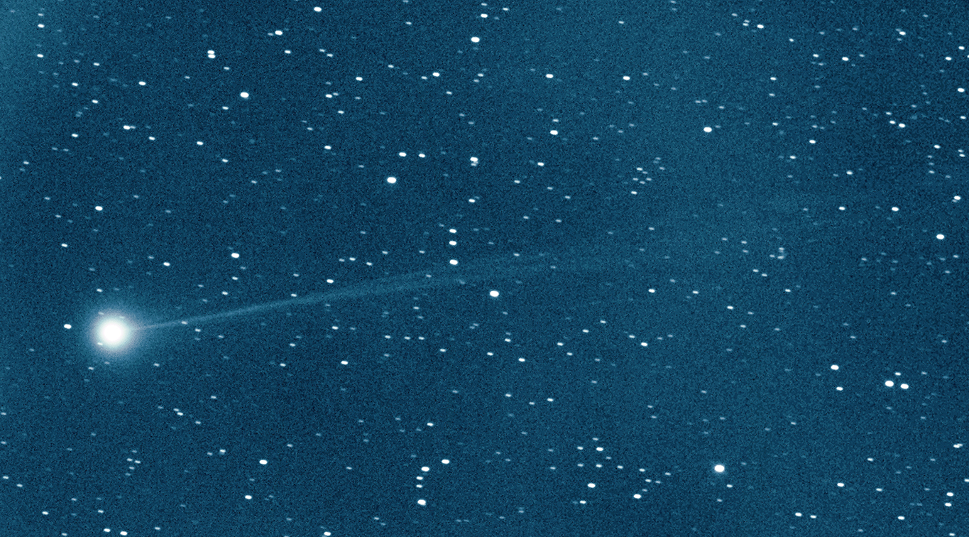 Unfiltered image of comet C/2023 P1 (Nishimura), obtained on 2023 Aug. 27 (2h40-2h43UT) with 60-cm, f/3.3 Deltagraph telescope and CMO. Exposure time was 7x20 seconds. Image scale is 1.6 arc sec/pixel. Cirrus clouds interfered observations. Copyright © 2023 by H. Mikuz, Crni Vrh Observatory.