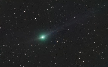 Comet 3I, obtained on 2025 November 28 (3h56-5h19UT) with 40-cm, f/4.0 Newtonian astrograph and PlayerOne Zeus camera. Exposure time was 70 minutes (40:10:10:10 in LRGB). Image scale is 0.97 arc sec/pixel. Image was taken at E-EYE observatory in Spain. Copyright © 2025 by R. Palcic, Rezman Observatory.