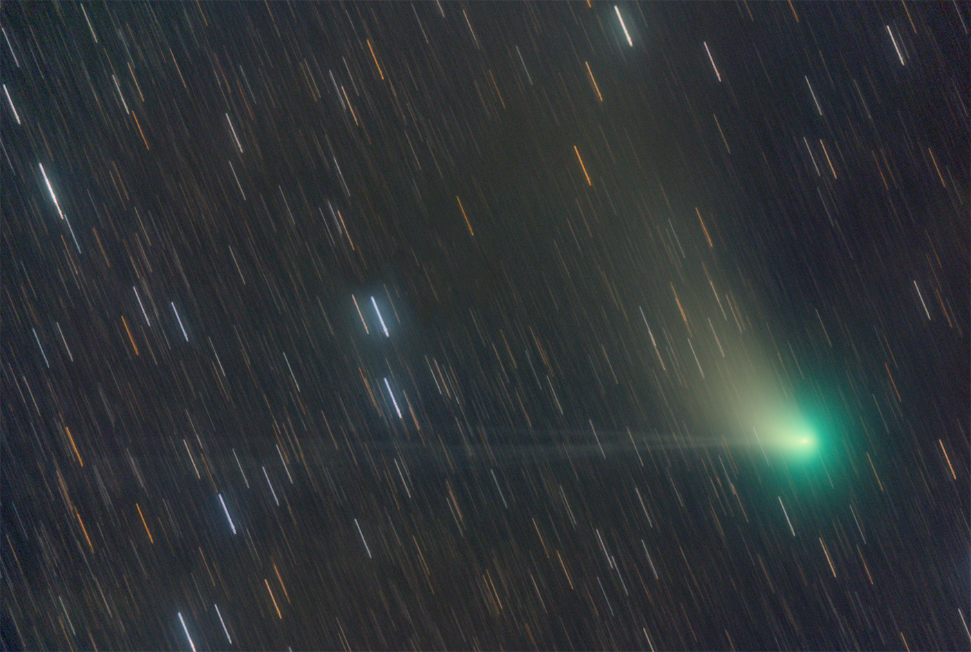Image of comet C/2022 E3 (ZTF), obtained on 2023 Feb. 9 (19h22-20h06UT), with 19-cm, f/4 Flat field telescope and ASI 2400 MC camera. Exposure time was 40 minutes (80x30 seconds). Image scale is 5.0 arc sec/pixel. Copyright © 2023 by H. Mikuz, Crni Vrh Observatory.