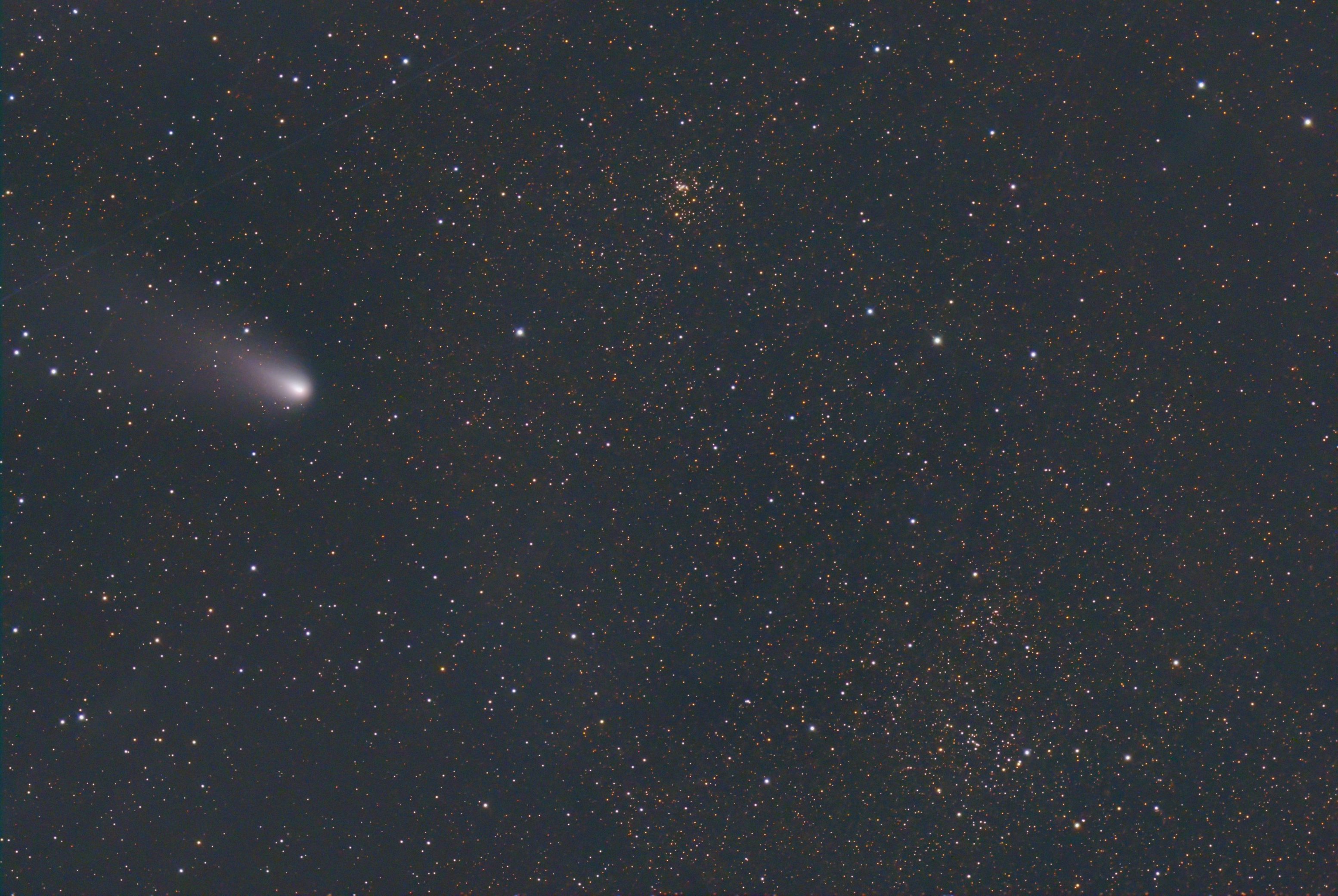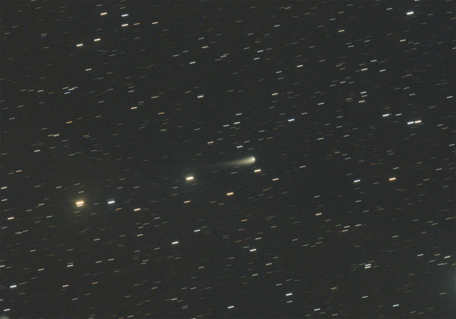 Image of comet C/2023 A3 (Tsuchinshan-ATLAS), obtained on 2024 Oct. 14 (17h25UT) at University of Ljubljana Astronomical Observatory with 200 mm, f/3.2 lens and Canon 6D. Image is stack of 30 1-second exposures taken from fixed tripod at ISO 1600. Copyright © 2024 by H. Mikuz.