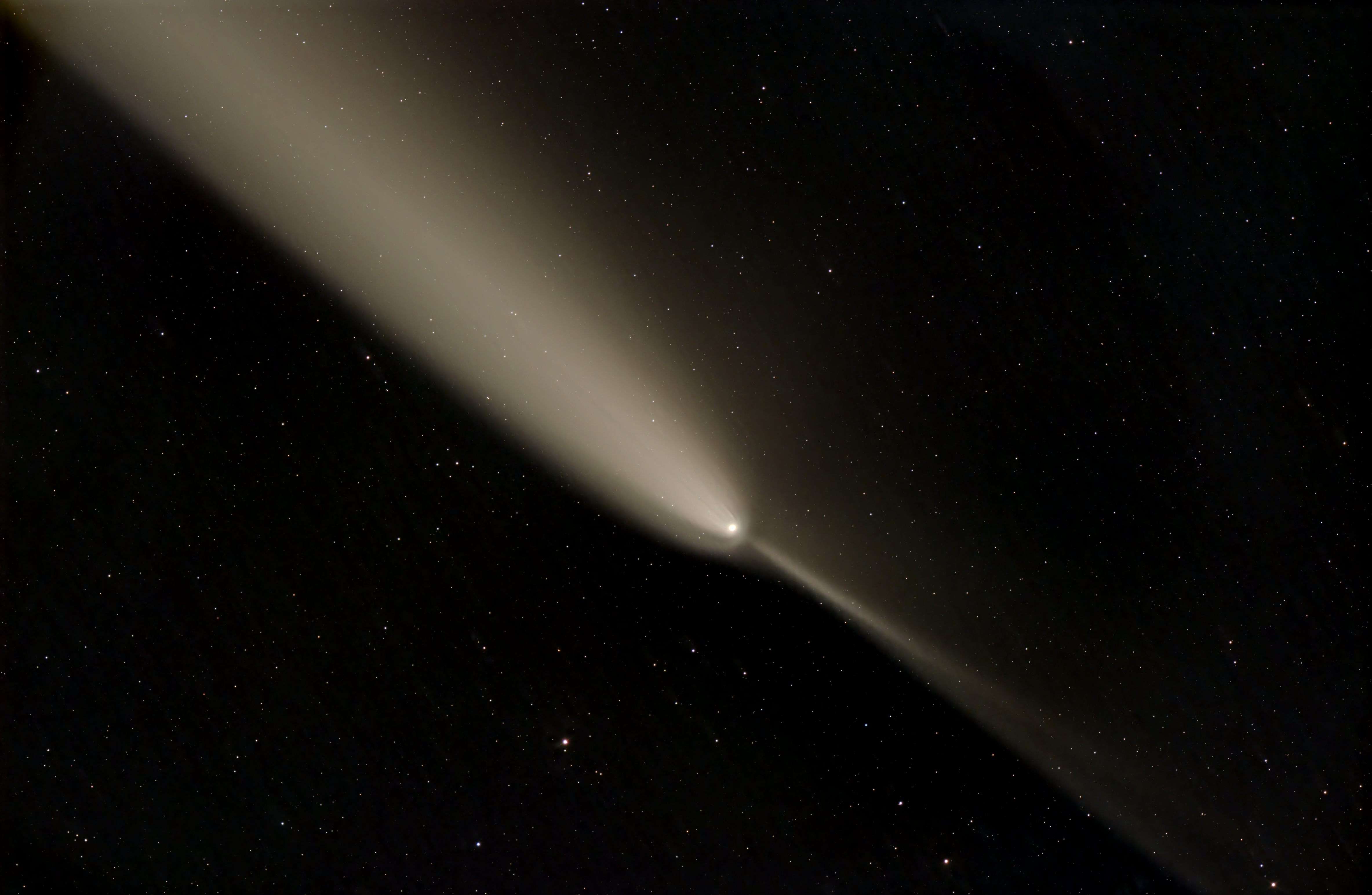 Image of comet C/2023 A3 (Tsuchinshan-ATLAS), obtained on 2024 Oct. 17 (19h11UT) at E-EYE Observatory in Spain with 280 mm, f/2.2 telescope and ASI6200MC. Image is a stack of 19 1-minute exposures. Copyright © 2024 by R. Palcic.