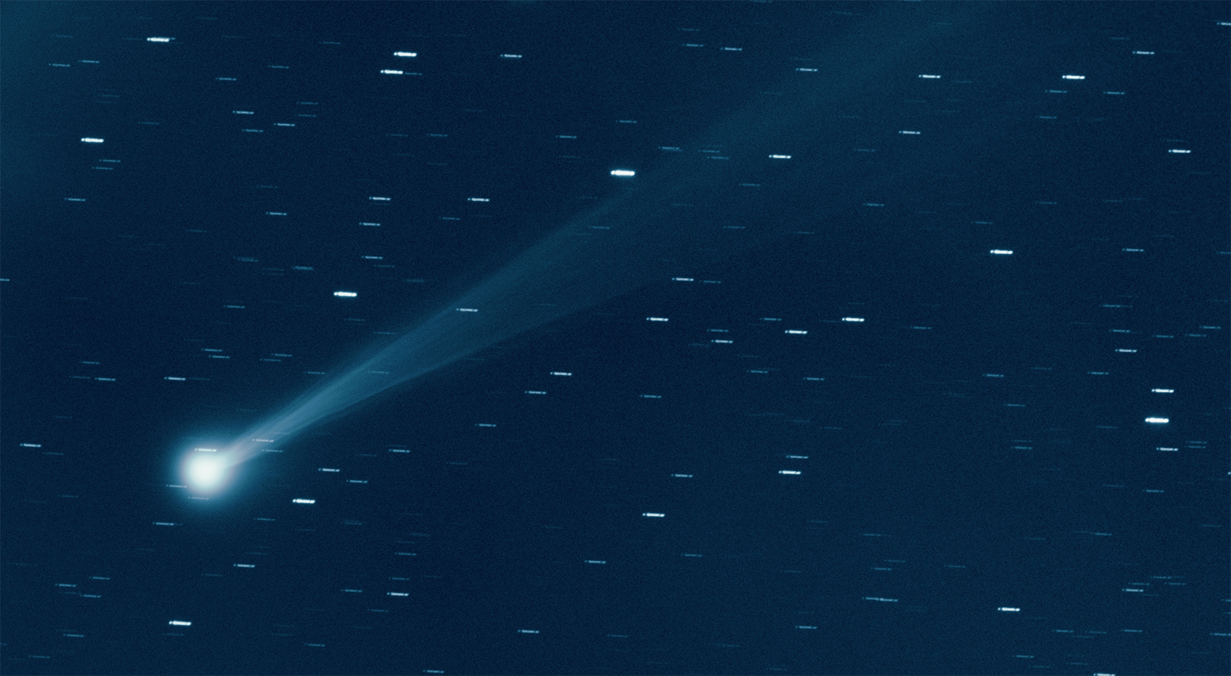 Unfiltered image of comet C/2023 P1 (Nishimura), obtained on 2023 Aug. 27 (2h40-2h43UT) with 60-cm, f/3.3 Deltagraph telescope and CMO. Exposure time was 7x20 seconds. Image scale is 1.6 arc sec/pixel. Cirrus clouds interfered observations. Copyright © 2023 by H. Mikuz, Crni Vrh Observatory.
