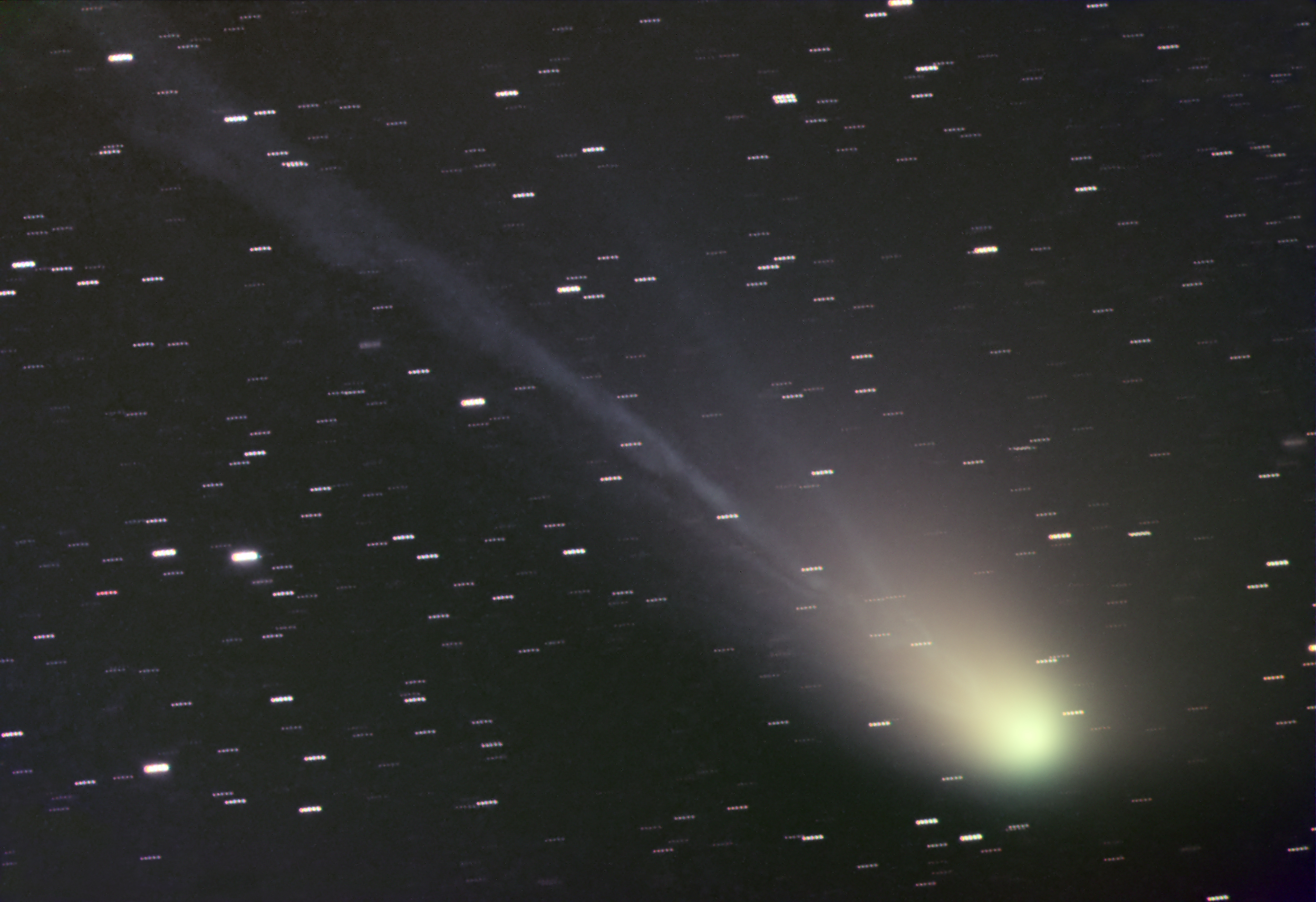 Image of periodic comet 13P/Olbers, obtained on 2024 June 16 (20h51-21h01UT) with 15-cm, f/6 Maksutov-Cassegrain camera and Canon 6D. Exposure time was 9 minutes. Image scale is 2.9 arc sec/pixel. Copyright © 2024 by H. Mikuz, Crni Vrh Observatory.