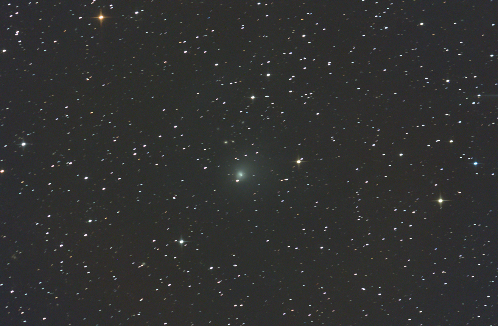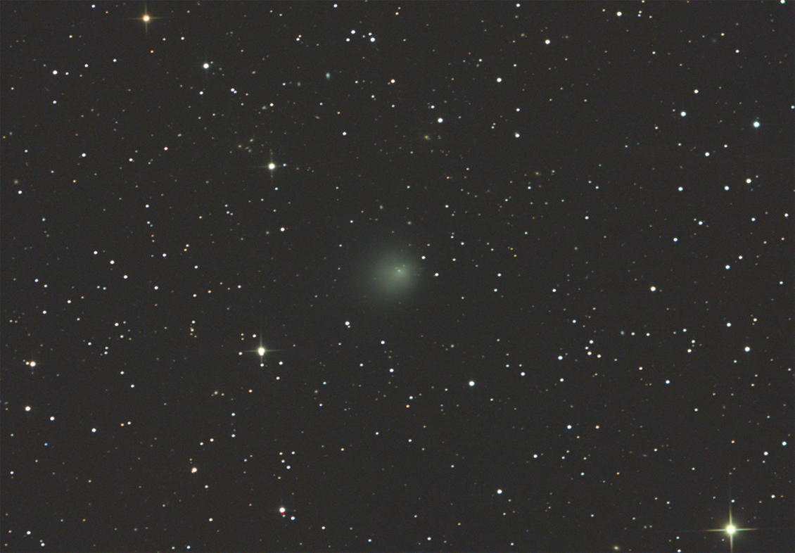 Image of periodic comet 29P/Schwassmann-Wachmann, obtained on 2025 Feb. 6 (4h16-4h31UT) with 20-cm, f/4 Quattro astrocamera and CMOS. Image is a composite of 15x60 second exposures. Image scale is 3.0 arc sec/pixel. As seen in the picture, the comet is just at the beginning of a fresh eruption. Copyright © 2025 by H. Mikuz, Crni Vrh Observatory.