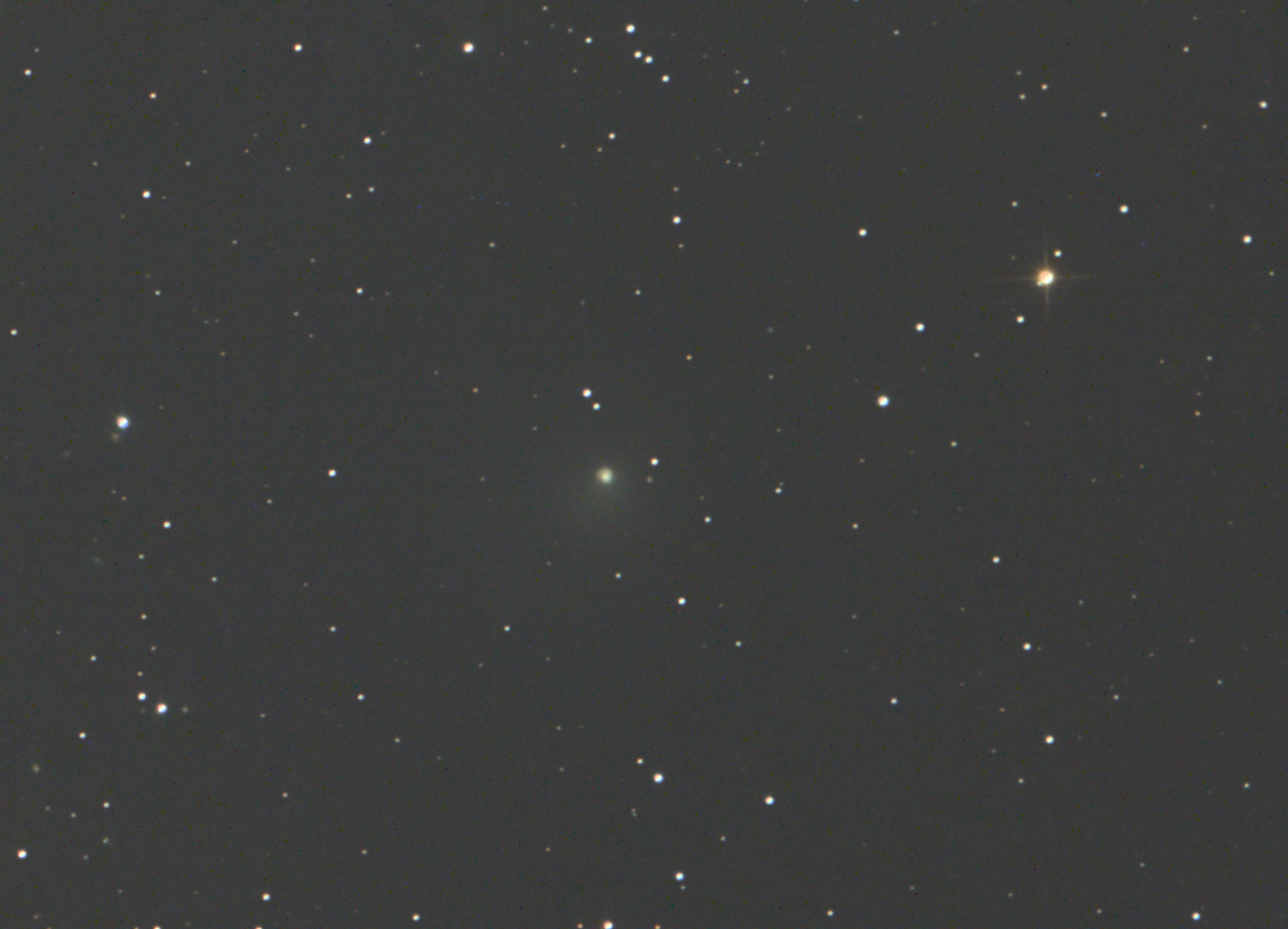 Image of periodic comet 29P/Schwassmann-Wachmann, obtained on 2024 Dec. 27 (3h23-4h02UT) with 20-cm, f/4 Quattro astrocamera and CMOS. Image is a composite of 20x120 second exposures. Image scale is 3.0 arc sec/pixel. Copyright © 2024 by H. Mikuz, Crni Vrh Observatory.