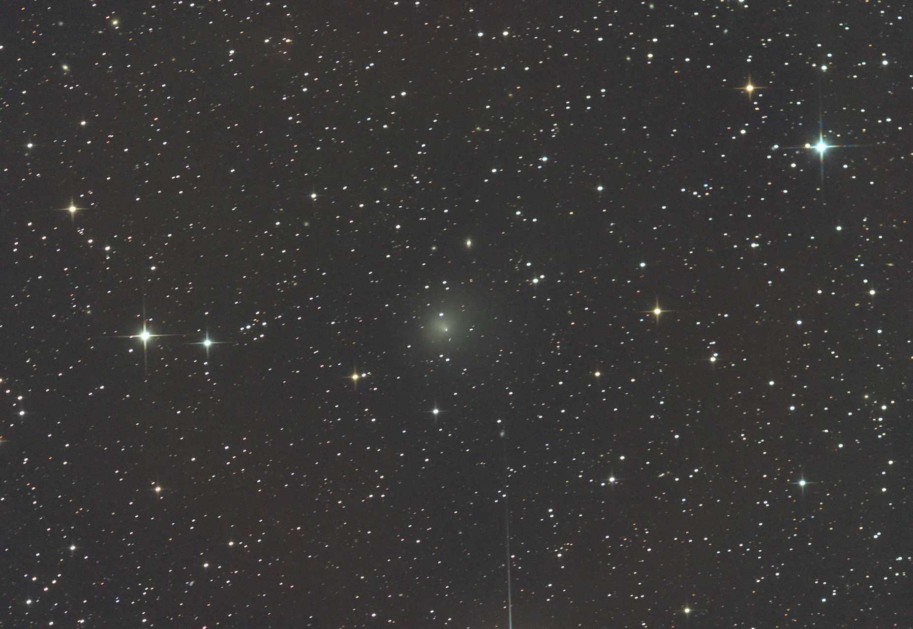 Image of periodic comet 29P/Schwassmann-Wachmann, obtained on 2025 Feb. 19 (21h31-22h30UT) with 20-cm, f/4 Quattro astrocamera and CMOS. Image is a composite of 30x120 second exposures. Image scale is 3.0 arc sec/pixel. Copyright © 2025 by H. Mikuz, Crni Vrh Observatory.